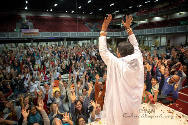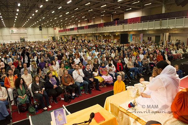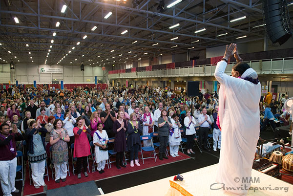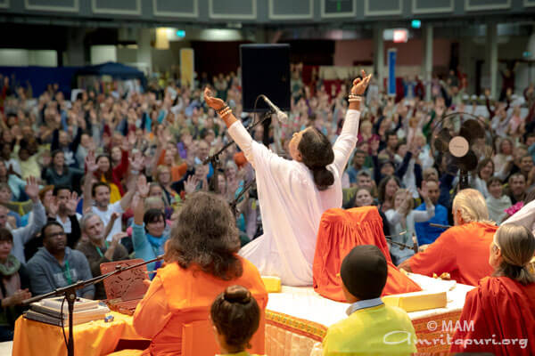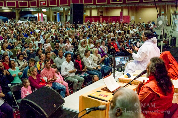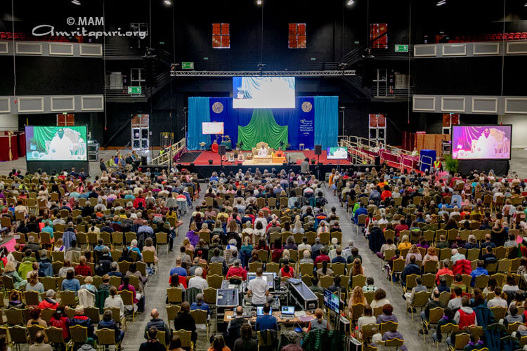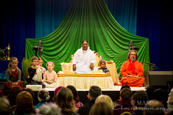The question had been about Amma’s Irish children, but Amma’s answer applied to her children from all over Europe, from all over the world. Only when we realise that our Self and Amma’s Self and the Self of all of humanity are one and the same, we will go beyond all suffering, all sorrow, all repulsion, and all delusion.