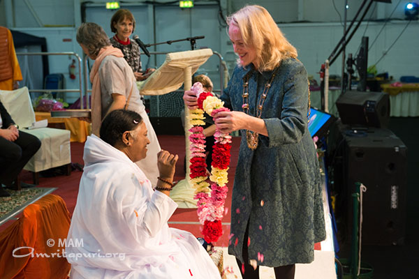 Mary Davis, Director of Special Olympics, also garlanded Amma. She commented that, “Amma exudes love and empathy; she unselfishly gives of herself, tirelessly caring for others.”