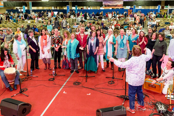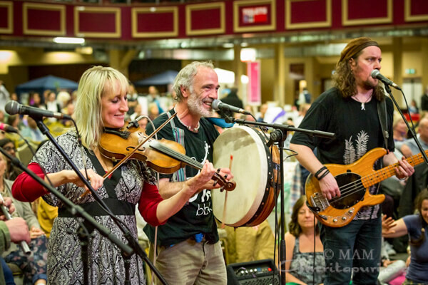 During Amma’s darshan, there were many local performances. Highlights included spellbinding performances by Kila, hailed as one of Ireland’s most innovative and exciting bands, as well as renowned musicians Maighread, Tríona Ní Dhomhnaill, Denis O’Hagan, and Donal Lunny. Program attendees also enjoyed the meditative atmosphere created by Vedic chanting by students of John Scottus School, whose voices resonated in unison.