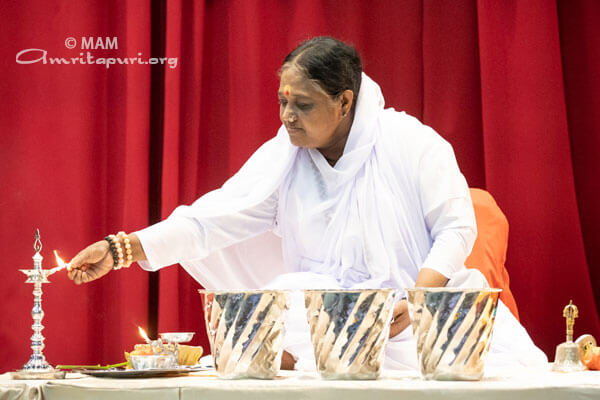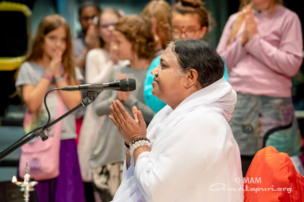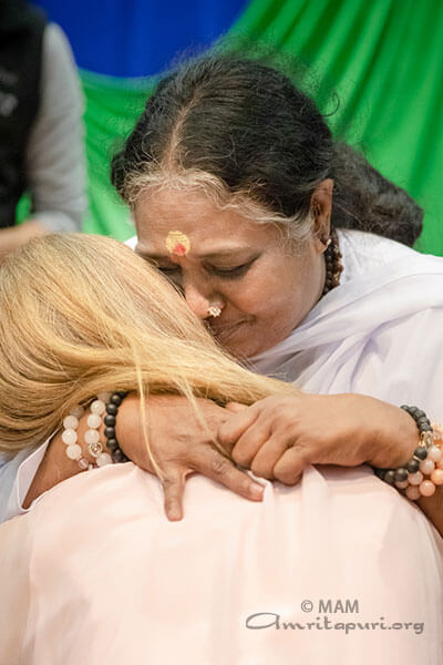 “Put in efforts to know who you really are,” Amma said. “When we look into a mirror, we do so to try to become someone else. But we need to look into our Self to see who we truly are. If we can come to know who we truly are, then we will always be with Amma.