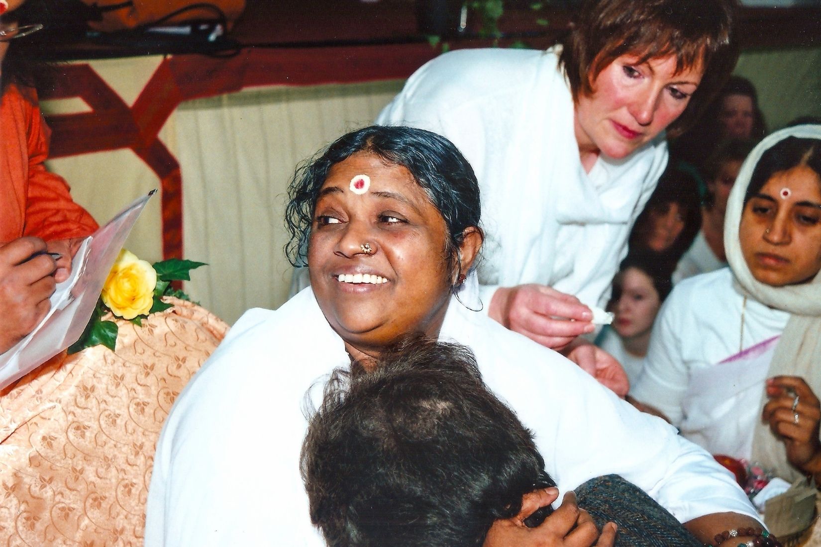 “Getting Darshan from Amma is so expansive that she takes me, her child, into another realm where there is only pureness and divine unconditional love. Where anything is possible that is for the highest good of all. Where nothing can hold me back or put me down. Where an incredible softness becomes me. Where a gentleness enfolds me. Where wisdom is accessible through trust. Where innocence of trust lives and pours through me. A deep yearning inside had come to an end. Something new was in its place. Something more beautiful and fulfilling than I had ever known before. This is a human account of a spiritual experience.”